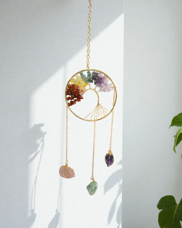 Los atrapásoles son piezas decorativas que juegan con la luz del sol para llenar tus espacios de color y energía. Están elaborados con cristales y piedras naturales que, al recibir los rayos solares, proyectan destellos y arcoíris mágicos en el ambiente.